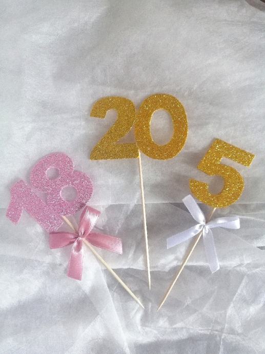 Topperi za tortu dostupni su u bojama kao na slikama i svim brojevima.