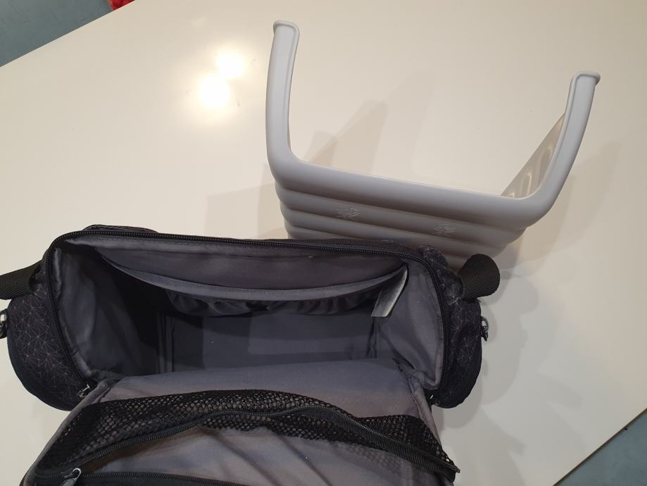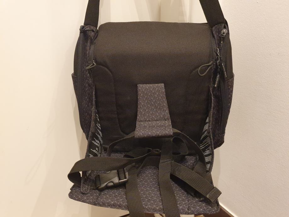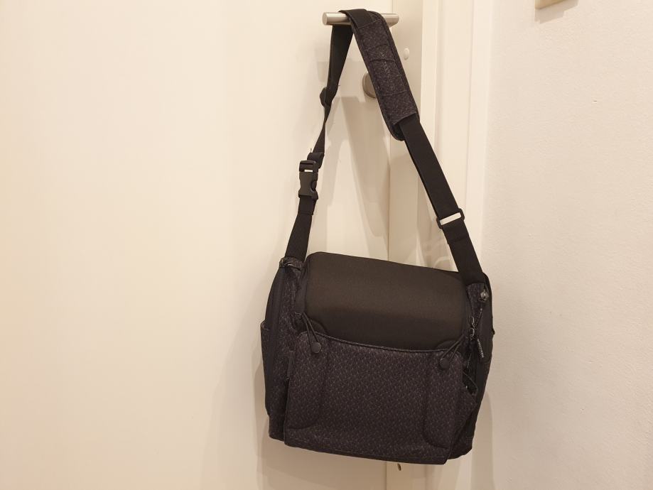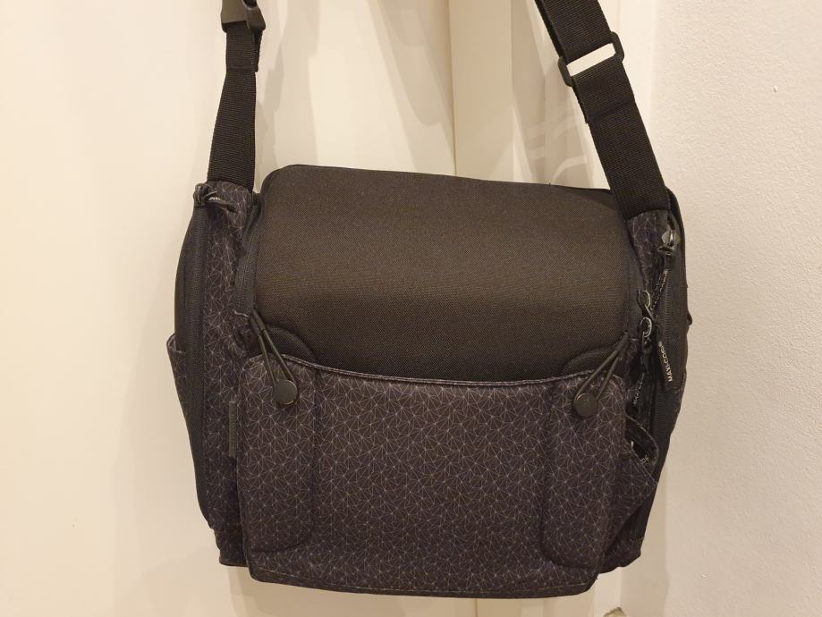 Torba je ugodna za nosenje na ramenu, a koristi se i zakačena za Maxi Cosi ili druga kolica