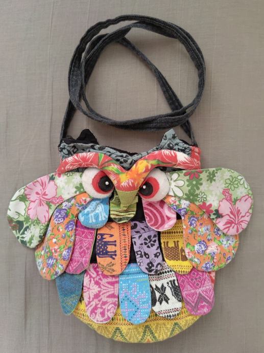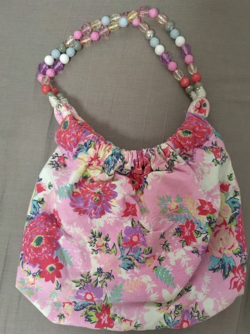Torbica platnena s ručkama od perli. Cijena 3 €.