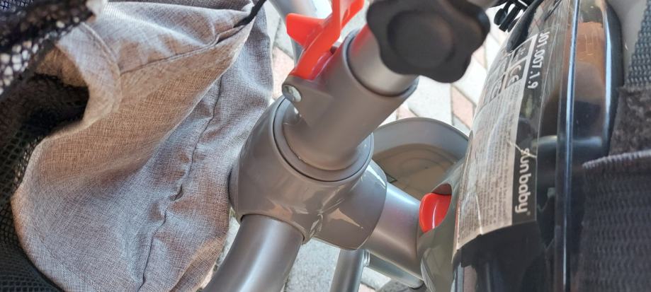 Verzija s zaštitnom ogradom i sigurnosnim pojasom uklonjenim za stariju djecu (roditelj i dalje može imati kontrolu pomoću ručke),