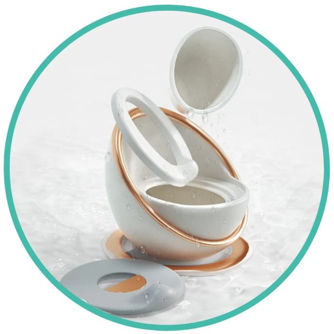 Jedna od najvećih kahlica dostupnih na tržištu. Ima veliki umetak koji se može izvaditi, mekano sjedalo, preklop i neklizajuće dno. Cijela struktura je udobna i ergonomska. Presvlaka također ima površinu protiv prskanja za dječake. Namijenjeno djeci od 18 mjeseci do 30 kg.