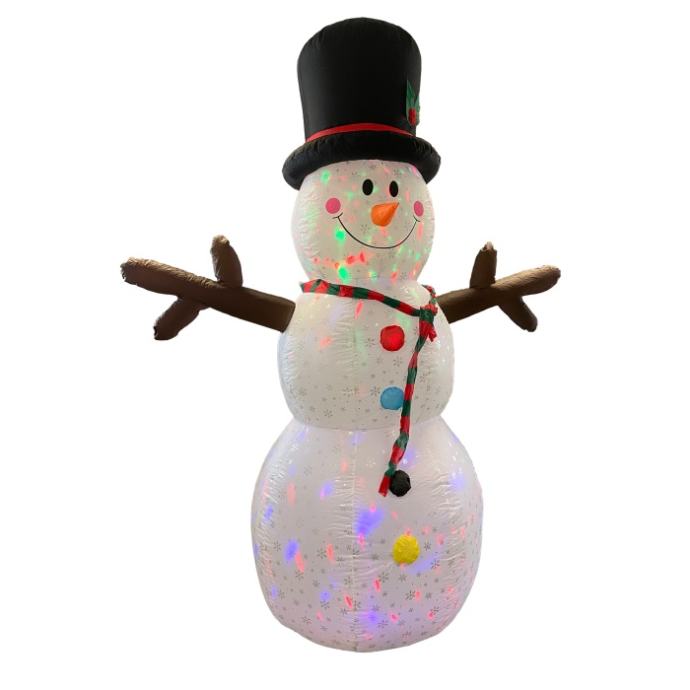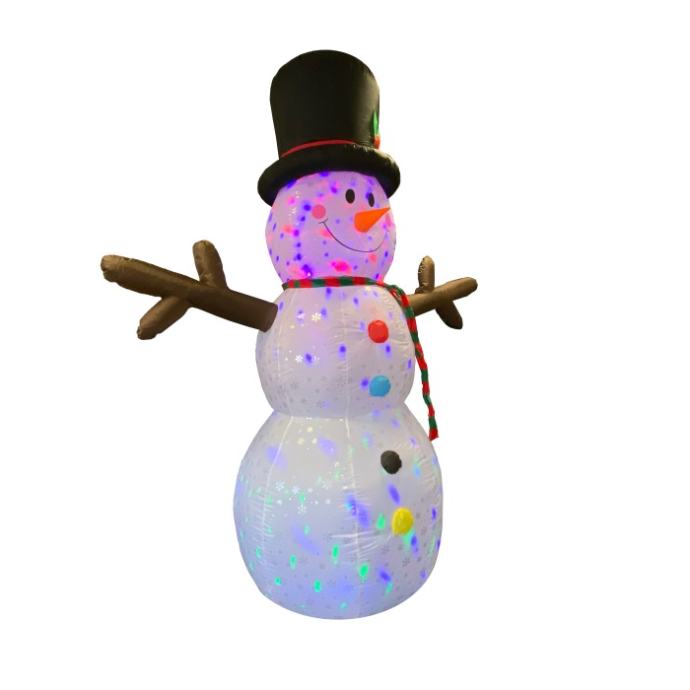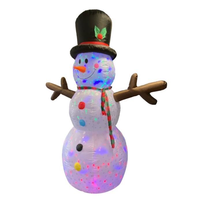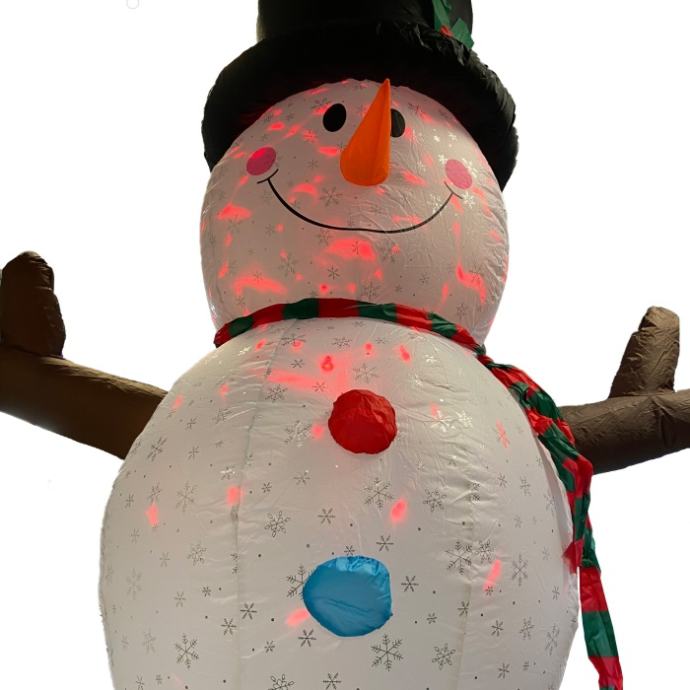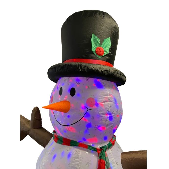 Snjegović na napuhavanje savršen je dodatak blagdanskoj sezoni. Snjegović visine 2,4 metra i širine 1 metar pogodan je za korištenje u zatvorenom i otvorenom prostoru. Montaža je izuzetno jednostavna jer se snjegović napuhne i ispuhne u samo nekoliko sekundi. Za stabilnost su uključeni klinovi i trake za zatezanje, a figuru je moguće dodatno ojačati ugrađenim vrećama pijeska. Ako je potrebno, možete povećati težinu pomoću patentnog zatvarača na stražnjoj strani figure za veću sigurnost i stabilnost. Njegova LED rasvjeta stvara prekrasan blagdanski ugođaj koji će oduševiti sve prolaznike.