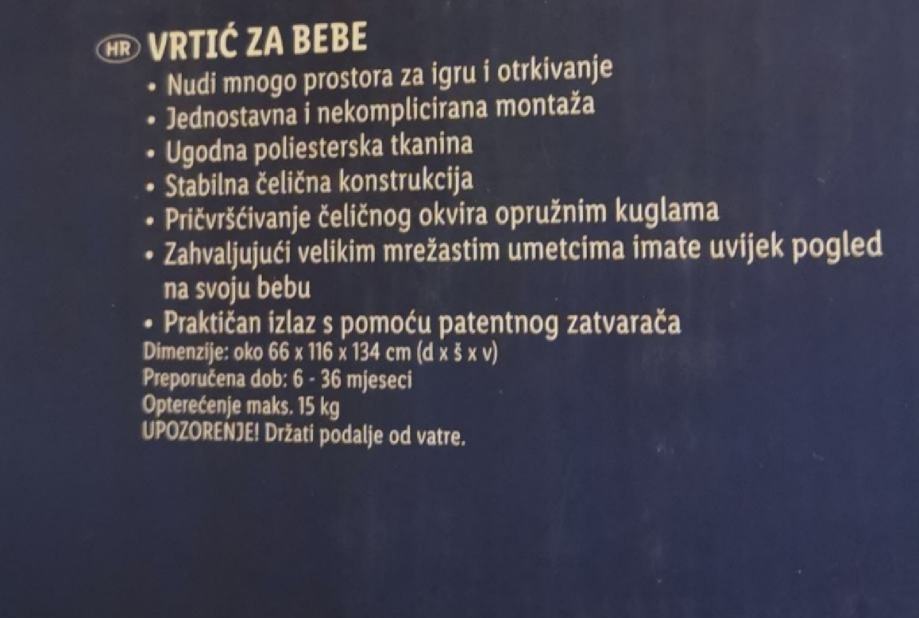 Prodajem rabljeni vrtić za bebe marke Lupilu. Radi se o šesterokutnoj ogradici s čeličnom konstrukcijom presvučenom ugodnom poliesterskom tkaninom.