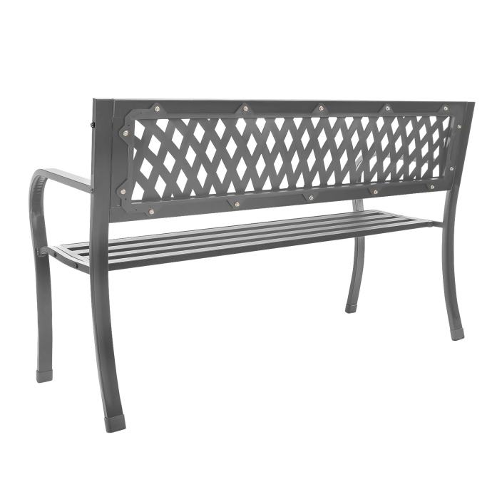 Čelična konstrukcija klupe prekrivena je posebnim zaštitnim premazom koji učinkovito sprječava hrđu i štiti površinu od mehaničkih oštećenja. Zahvaljujući tome, namještaj je otporan na vlagu, UV zračenje i promjenjive vremenske uvjete, što osigurava njegov estetski izgled i funkcionalnost dugi niz godina.