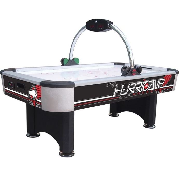 Stol za zračni hokej Hurricane teži 96 kilograma i luksuzno je izrađen – s velikom površinom za igru, podignutim rubnim okvirima i elektroničkom pločom za rezultate.