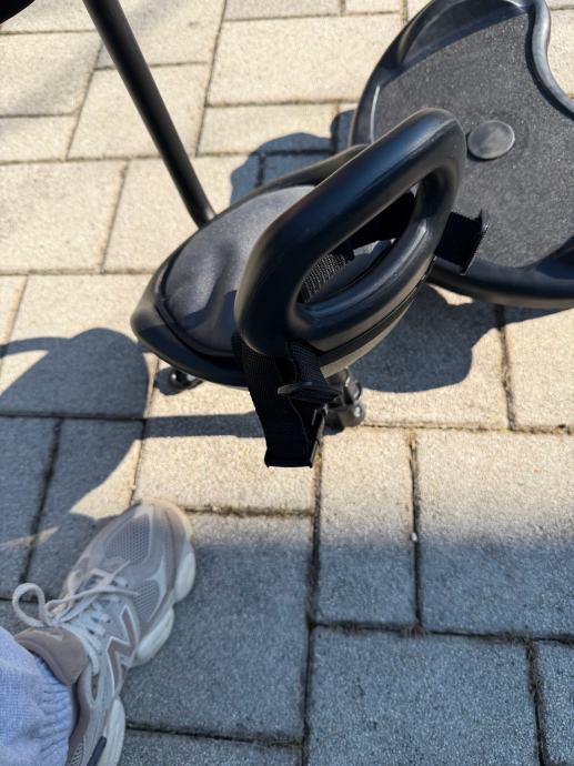 Prodajem Freeon Buggyboard s sjedalom i ručkom u crnoj boji. Radi se o dodatku za dječja kolica koji omogućuje starijem djetetu da stoji ili sjedi dok se guraju kolica s mlađim djetetom. Dolazi sa sjedalom s jastukom, sigurnosnim remenom te ručkom obloženom mekanom pjenom. Pričvršćivanje na kolica vrši se pomoću spojnica koje se vide uz sjedalo. Koristeno jednom