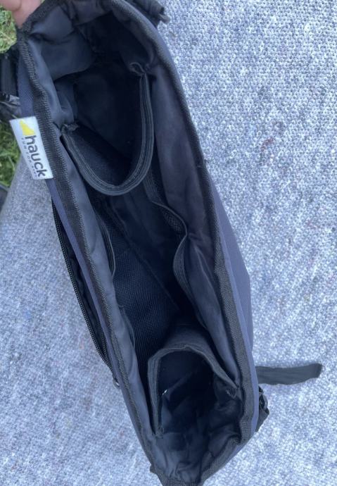 Prodajem torbu koja se montira na ručke kolica marke Hauck. Korištena na Thule Urban Glide kolicima za vrijeme trčanja kao držač boca vode.