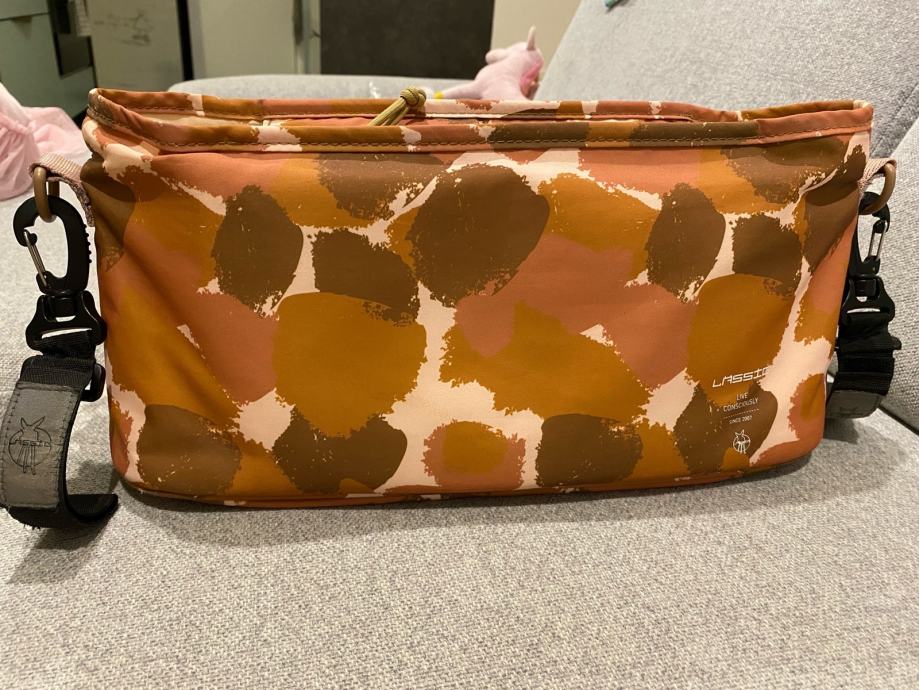 Univerzalni organizator za kolica. S glavnim dzepom i tri dodatna te dva prostora za boce. U jako dobrom stanju, koristen na Joolz Aer kolicima