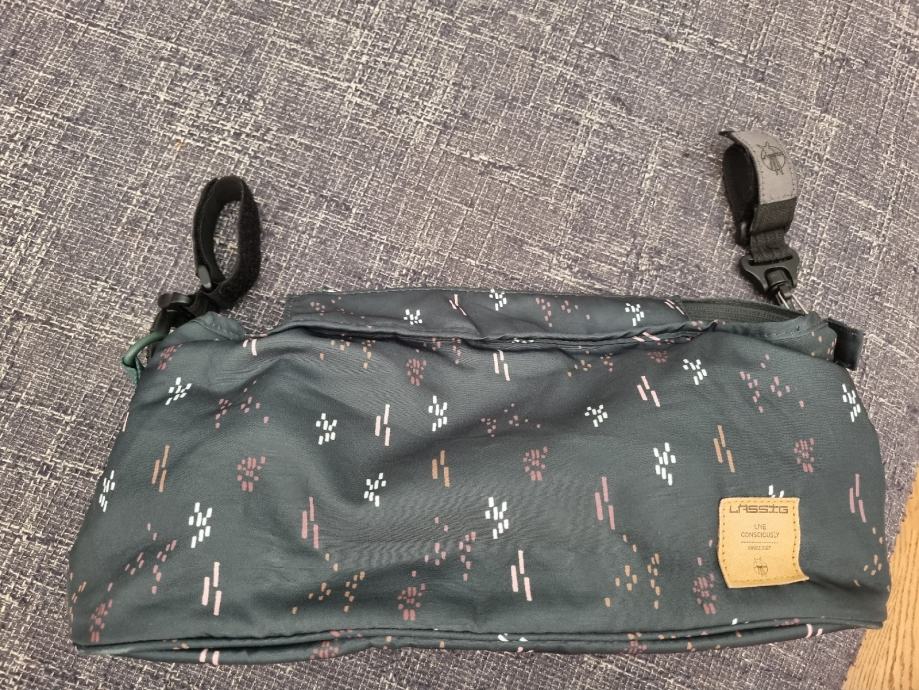 Kratko koristena u odlicnom stanju. Prakticna postavlja se na rucku kolica. Ima vise pretinaca.