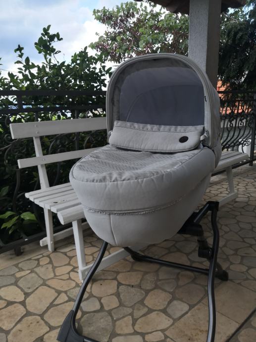 Odlično ocuvana kolijevka. Komotna i velika. Zajedno sa stalkom sta je super praktično jer ima kotačiće i lako se prebacuje po prostorijama.