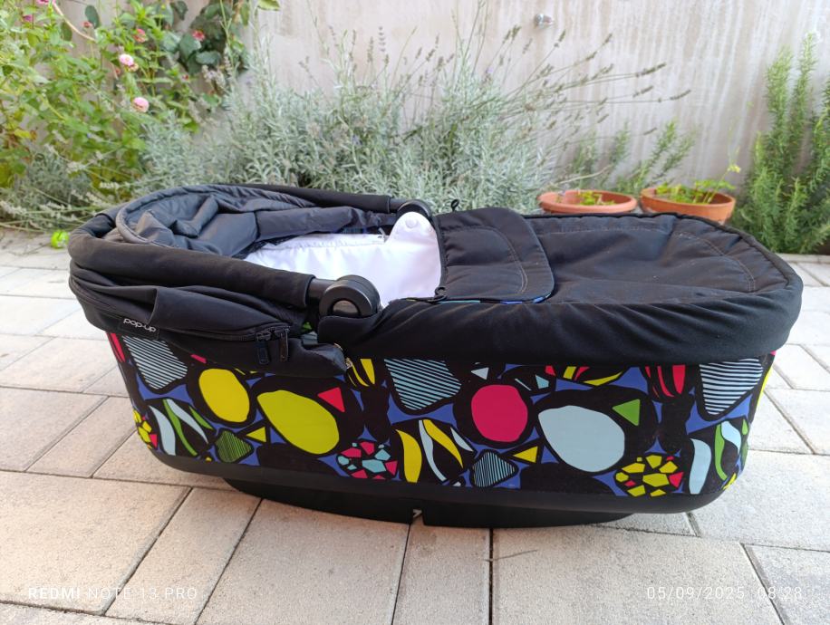 Povoljno prodajemo Peg Perego sklopivu košaru (pop-up), kombinacija crne i šarene boje, u jako dobrom stanju. Navlaka skidiva i periva.