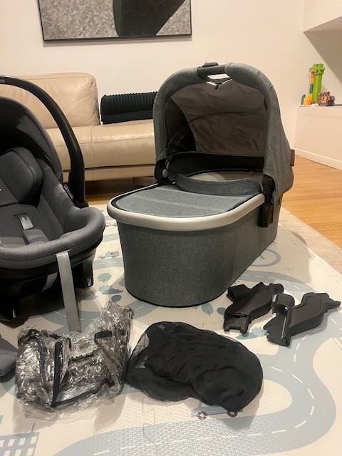 Prodajem UPPAbaby set u Gregory boji: Autosjedalica Mesa i-Size (0-13 kg) + Vista V2 Košara koja dolazi zajedno sa zaštitom od komaraca i kabanicom + Adapteri.
