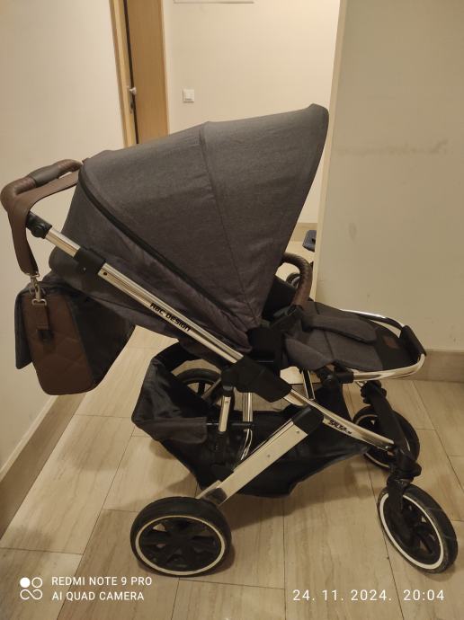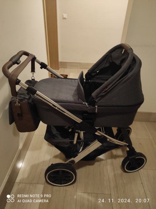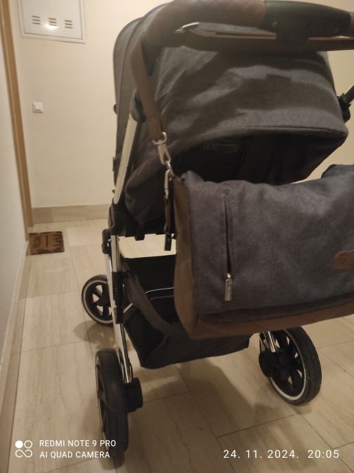 Uključeno: sigurnosna prečka, nosiljka za bebe, kupola, mreža za kupovinu, postolje dječjih kolica, kožna ručka, naslon za noge