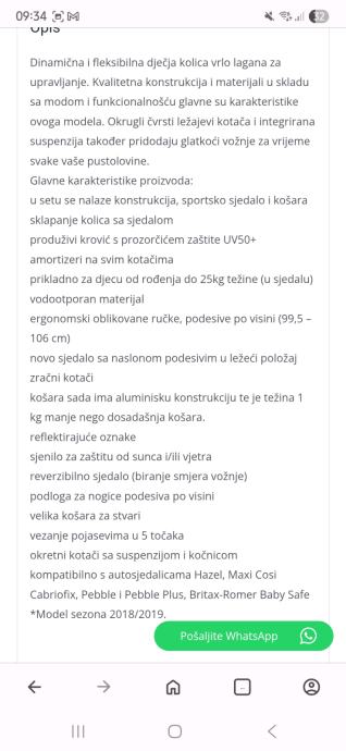 Prodajem kolica 2u1 košara i sportski dio-sve karakteristike imate na zadnjoj fotografiji.