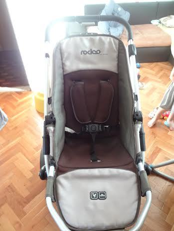 kolica prikladna su za djecu od rođenja do maksimalne težine od 15 kg. ABC Design Rodeo su lagana kolica modernog dizajna sa tri velika kotača kojima se može jednostavno upravljati, zahvaljujući okretljivom prednjem kotaču s mogućnošću blokade. Kolica nemaju zadnju osovinu čime se otvara više prostora za noge prilikom guranja te je na taj način dodatno olakšano upravljanje kolicima. Ručka je podesiva po visini u 3 položaja. Ova kolica uključuju laganu aluminijsku konstrukciju,sportsku jedinicu za sjedenje koja rasterećuje djetetovu kralježnicu, a može se postaviti u oba smjera.Sigurnost djeteta osigurava sigurnosni pojas u 5 točaka vezanja. Naslon sportskog dijela može se postaviti u 3 položaja. Oslonac za noge podesiv je po visini. Krov kolica ima UV 50+ zaštitu od sunca te je vodonepropustan. Na donjem dijelu nalazi se praktična i velika košarica za kupovinu. Svi kotači mogu se skinuti što olakšava transport. Kolica imaju kočnicu za parkiranje, ojastučen sigurnosni pojas, te zaštitnu prečkicu koja se može skinuti. Presvlaka se može prati.Moguće je kupiti i dodatnu ABC Design opremu: autosjedalicu i košaru za bebe,
