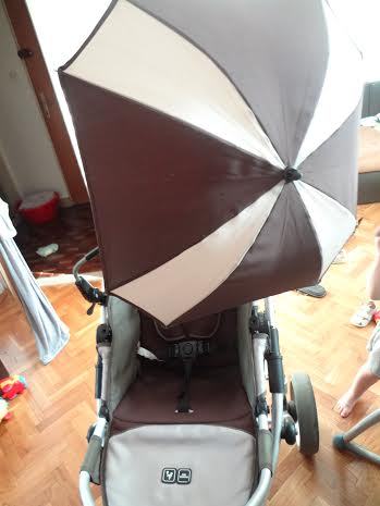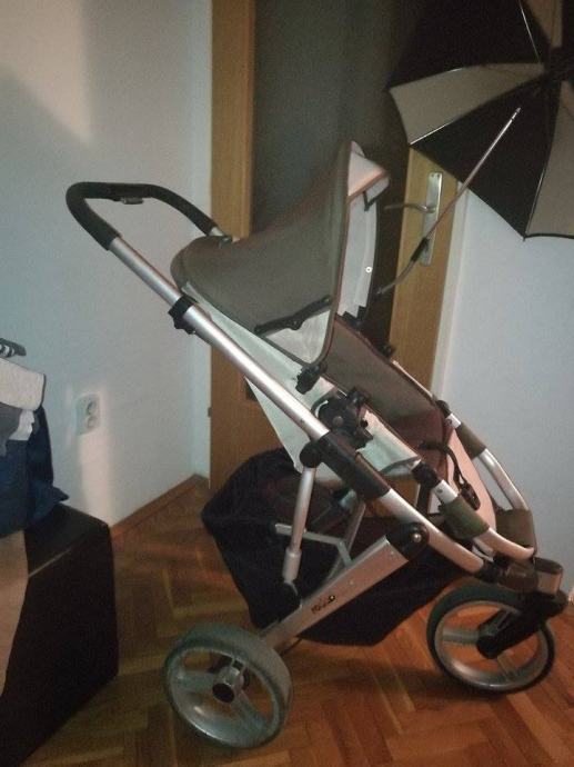 Kolica su u dobrom stanju ništa nije strgano jedino na točkovima ima malo ogrebotinica ali je to od vožnje i kamenčića ne primjeti se puno. Dodatno kupljen i suncobran koji je uključen u cijenu i lako se postavlja na kolica. Boja je pogodna za cure i dečke beš- smeđa- maslinast zelena.