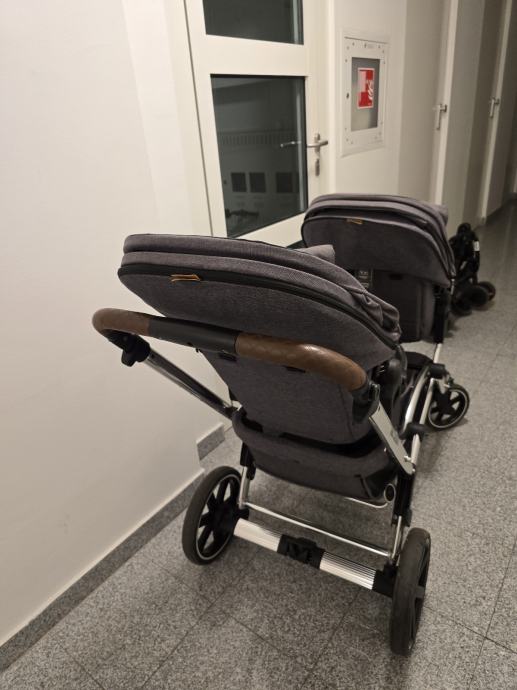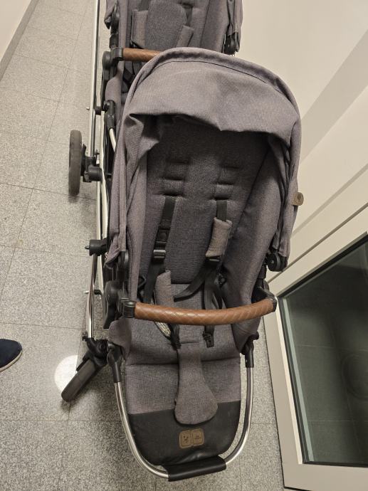 Luksuzna ABC zoom kolica za blizance s potpunom opremom. Kolica na slici imaju sportska sjedala, ali takodjer imamo i košare. S njima dolazi torba za pelene i drzac za case. Kolica su u odlicnom stanju, skoro kao nova. Kosare se mogu okretati u svim smjerovima, kao i sportska sjedala. Velika košara ispod sjedala odlicno dodje za stvari i namirnice.