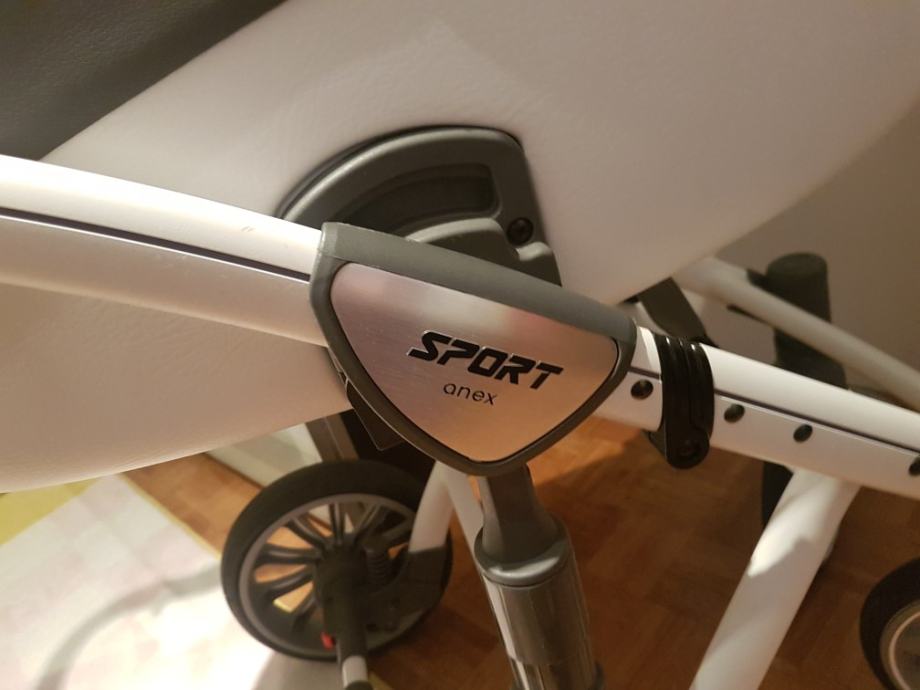 Komplet sadrži: • Kompaktni aluminijski okvir • Prednji i stražnji kotači na napuhavanje • Sportsko sjedalo i duboka košara za novorođenče (unutrašnjost 100% pamuk) • Košarica za kupnju • Torba • Zaštita od kiše • Zaštita od komaraca • Komplet 3 u 1 nastavci podesivi na kolica u smjeru vožnje ili obrnuto. Značajke Anex sport modela: • Kompaktne dimenzije • Okvir od aluminijske legure • Sadrži mekane podloge • Kotači sadrže ležajeve • Ručka podesiva po visini • Okvir otporan na ogrebotine • Kotači podesivi na ravno ili okretni za 360 stupnjeva • Sustav za brzu montažu i sklapanje kolica • Blokada koja automatski sprečava rasklapanje kolica • Velika košarica za kupnju s jednostavnim pristupom • Središnja kočnica • Jedan klik sustav za jednostavnu montažu i demontažu i pričvršćivanje nastavaka • Ručka od organske kože • Moderan izgled • Dodatna suspenzija • Kotači na napuhavanje Značajke duboke košare: • Za djecu do 9 kg • Prostrana unutrašnjost • Uključuje ručku za nošenje • Sadrži mekani madrac od kokosa • Impregnirana tkanina - lako se čisti • Može se koristiti kao postolje • Dodatni krov • Podesivi naslon za leđa • Ventilacijski sustav • Tkanina sadrži ione srebra i djeluje antibakterijski i antiseptički Sportski sjedeći dio Anex Sport : • Mogućnost podešavanja u smjeru kretanja i obrnuto • Mogućnost podešavanja naslona u vodoravnom položaju • Lako se pričvršćuje na okvir kolica • Podesivi oslonac za noge • Zaštitna torba • Podesivi naslon kolica • Ventilacijski sustav • Odvojivi naslon za ruku ili zaštita • Sigurnosni pojas s 5 točaka • Unutarnji jastuk se može prati • mogućnost regulacije sigurnosnih pojaseva • Premaz je dodatno impregniran i jednostavan za čišćenje • Tkanina sadrži ione srebra i djeluje antibakterijski i antiseptički Autosjedalica / Jaje od 0-13 kg: • Zinska navlaka zaštitu za nogice • Pogodno za novorođenčad, umetak • Sigurnosni pojas podesiv po visini • Unutrašnjost koja se može prati • Odobrenje je u skladu s ECE R44 / 04 • Pojačani jastuk i stranice pružaju dodatnu sigurnost Značajke torbe: • Sadrži remen koji se može skinuti • U boji kolica • Sadrži snažnu ručku • Fiksirani s metalnim nosačima • Mogućnost zatvaranja • Dizajniran za pohranu sitnih predmeta i pribora Tehničke značajke: Težina kolica: 8,65 kg Duboka košara: 3,25 kg Težina sportskog nastavka: 3,65 kg Težina duboke košare s okvirom: 11,9 kg Težina sportskog nastavka i kolica: 12,30 kg Dimenzije sklopivih kolica s kotačima (dužina / visina / širina) 78cm / 35cm / 60cm Ukupna visina kolica s košara : 123cm Međuosovinski razmak: 60cm Visina dječjih kolica: 123cm