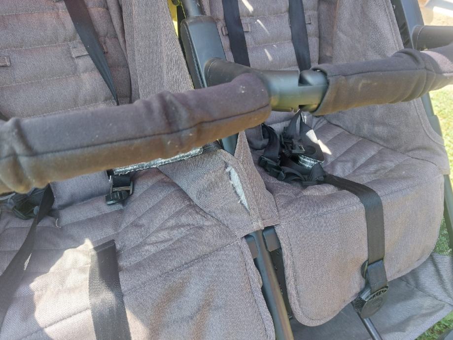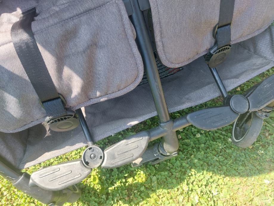 Ovakoo odmah cu napisati stanje kolica , kao sto se na slici vidii fali jedna kuglica tamo di stavljaju nogee ali ne ometaju u voznji niti smeta..drugo ostecenje je sto se posredini vidi da se deru trebalo bi ih sasiti da se ne sirii..i trece na krovicu desnom je otisla zica koju ja duzi period samo spojim al moze se izvuci i zaljepiti i vratit u krovic,isto tako ne ometa u sklapanju kolica iili zastiti od sunca..