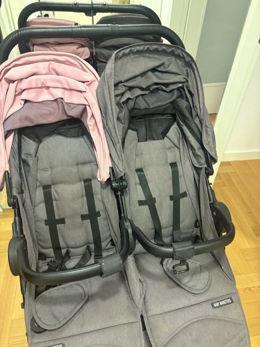 Prodajem Baby Monsters Easy Twin 4 kolica za blizance. Uz njih se mogu kupiti i košare za bebe u istim bojama.