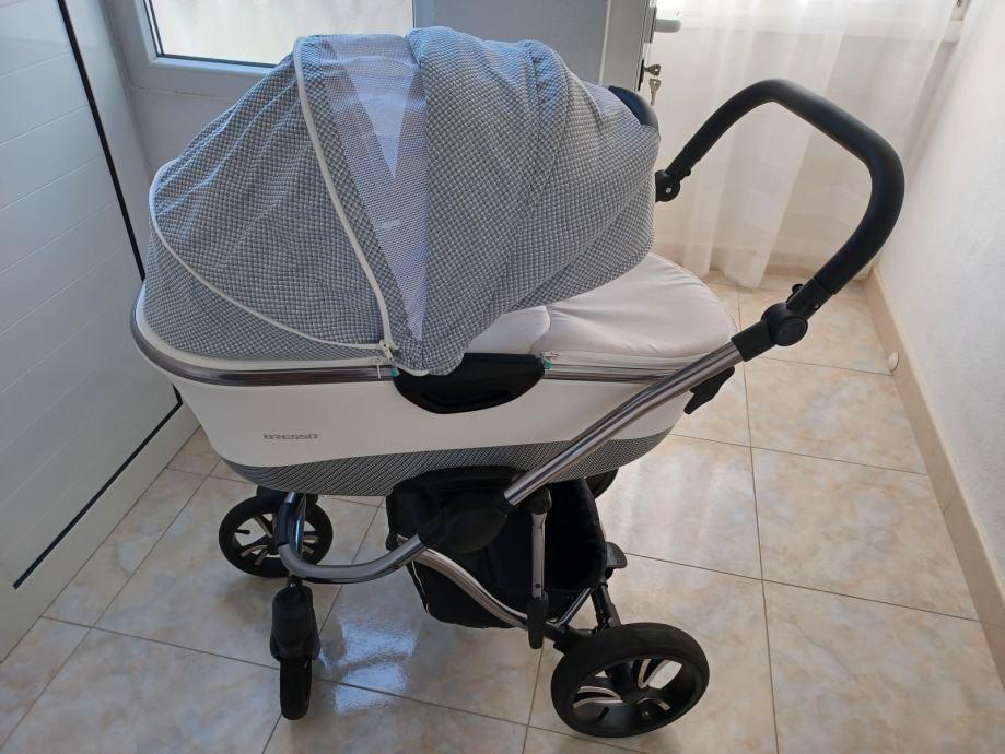 Bebetto Dječja kolica Bresso Premium Class u odličnom stanju + Bebetto autosjedalica za bebe 0-13 kg ( Bobostello Mars ) + pokrivalo za noge (za sportski dio kolica) + stalak za čašu
