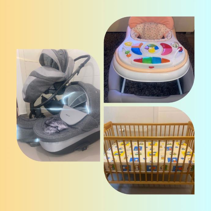 Prodajem djecja kolica Bebetto, krevetac sa hespo madracem i hodalicu s njihaljkom freeON. Baldahin kupac dobije na poklon + posteljina!Jako malo koristeno...Info0917299150 ili 0992392810
