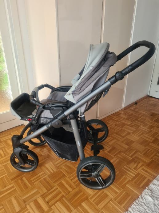 Prekrasna ocuvana Bebetto djecja kolica, Nico dječja kolica su lagana aluminijska kolica, prednji rotirajući kotači se mogu zaključavati te imaju SAS i DMS sustave. Prednost je mogućnost montiranja sportskog sjedala prema naprijed ili natrag. Uz to, Nico ima prostranu košaricu za odlaganje manjih stvari. Prednost ovog modela je i zanimljiv dizajn i dostupnost u mnogim verzijama boja. Nico kolica možete sklopiti sa sjedalom – bez potrebe za odvajanjem sjedala.