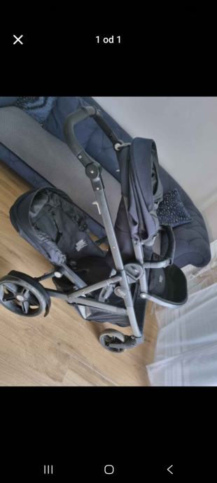 Prodajem kolica za dvoje, gornji dio se namješta u oba smjera, može biti ležeći položaj, sjedeći. Donji dio se isto može malo podići. Na gornji dio sa adapterima može se staviti i vaše jaje.