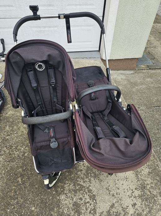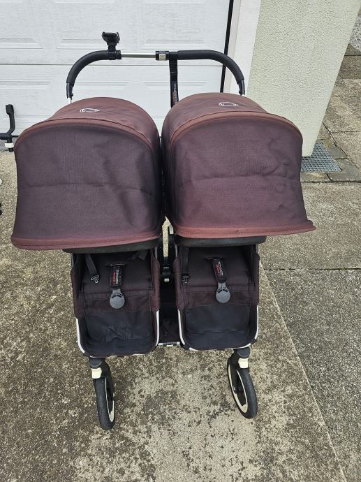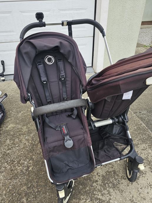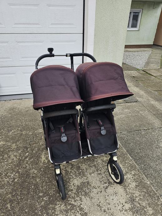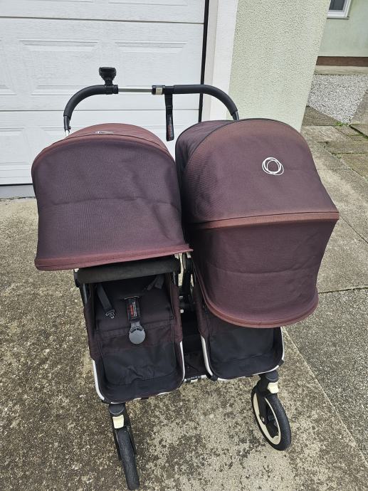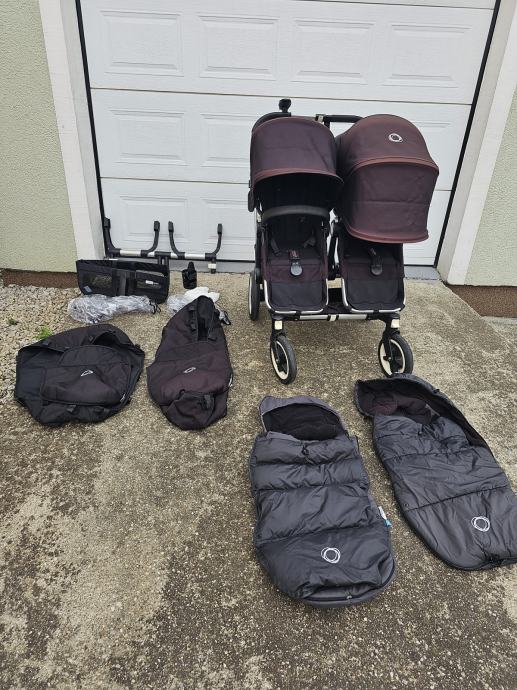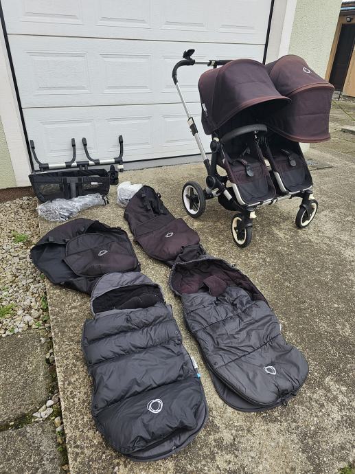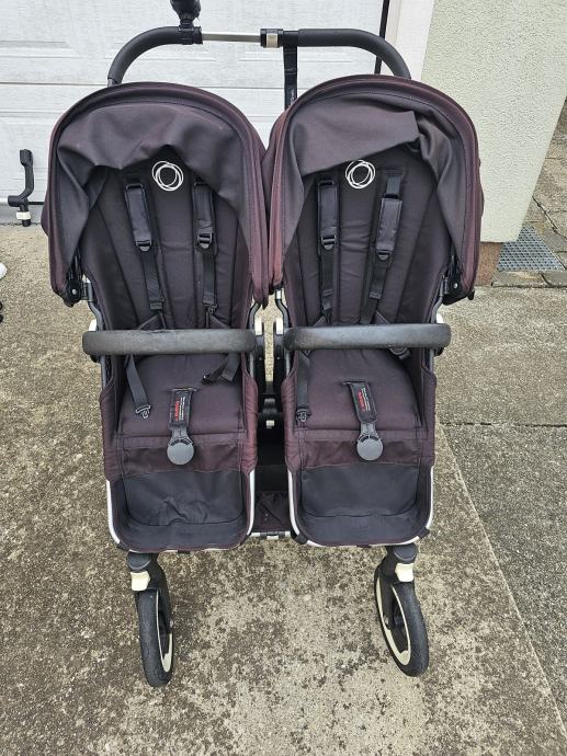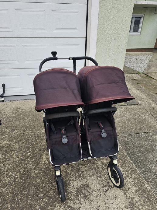 Bugaboo donkey twin kolica za blizance. Drugi vlasnici. U super stanju. Crne boje koja je izbljedila i sada vuce na crvnekastu. Ostecenja prednjih ruckica od zubica. Zamjenjen jedan kotac. Od dodatne opreme: adapter za jaja, dvije zimske vrece, dvije navlake za kisu, jedna navlaka za komarce, drzac za casu, drzac za mobitel, kosara ispod sjedala, kosara za mono verziju kolica. Dostava besplatana.