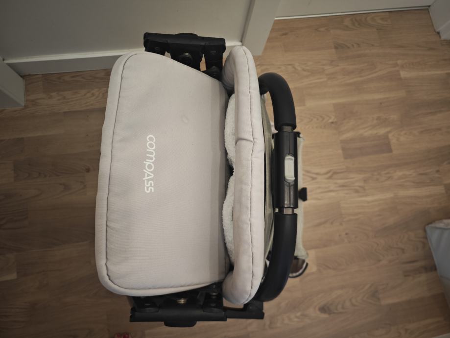 Rabljena Compass kišobran kolica bež boje. Ima 2 mode, sjedeći i ležeći, zaštitu od sunca te su jako praktična.