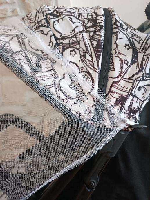 Postoji ručka za potezanje za lakši transport sklopljenih kolica. Na krovu ću postoji mrežica pa se krović može "produžiti" a mrežica omogućuje cirkulaciju zraka i zaštitu od komaraca.
