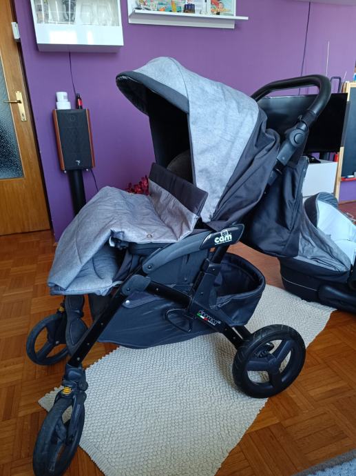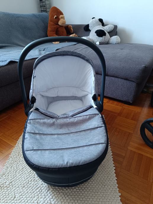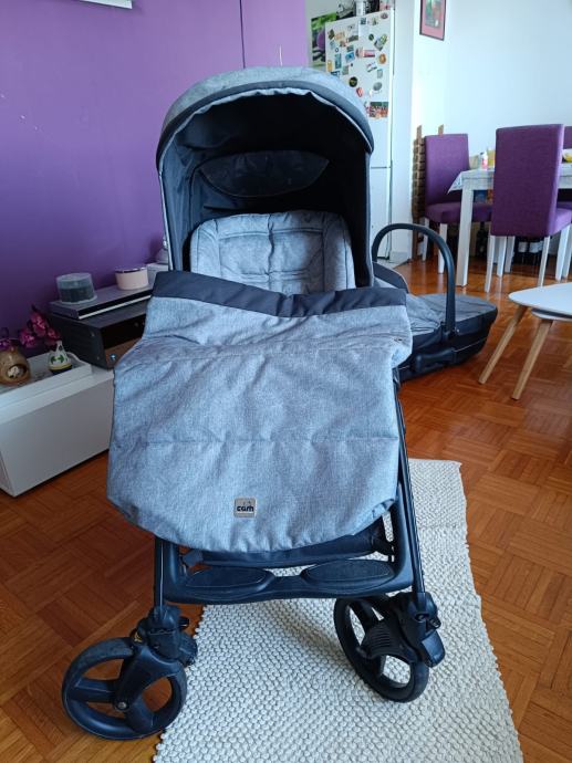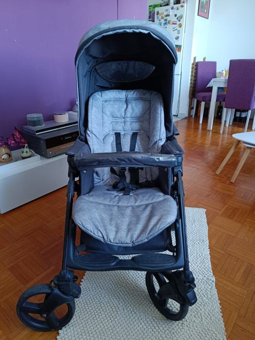 Očuvana dječja kolica renomiranog proizvođača korištena samo za jedno dijete. Kolica imaju zadnje gume na napuhavanje, četiri amortizera, torbu i dodatnu zimsku navlaku!