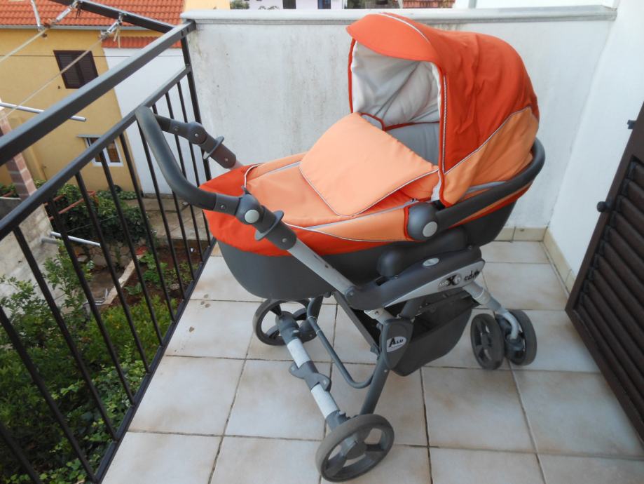 Sjedalica, kad beba ima par mjeseci stavlja se u "seggiolino". Sjedalica je za vožnju u autu , isto tako ide na kolica u 2 smjera.