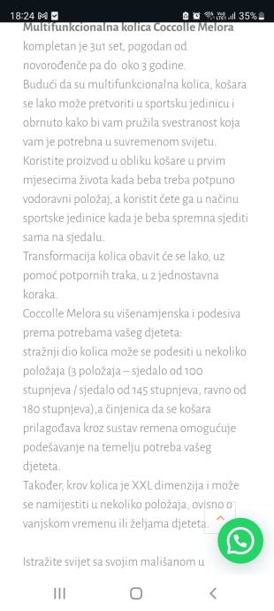 Prodajem kolica 3u 1...koristena 6mjeseci...košara je ujedno i sportski dio kolica..u par klikova iz kosare u sportski dio se pretvara...