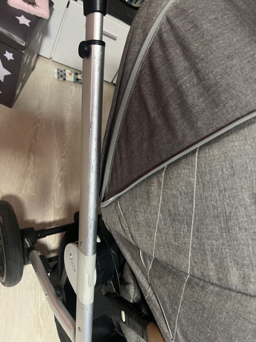 Kolica korištena za jedno djete uz nosiljku. Desna strana konstrukcije ima ogrebotine od stavljanja u gepek. Ostalo je sve super, ni kožni dio nema nedostataka. Za sve terene.