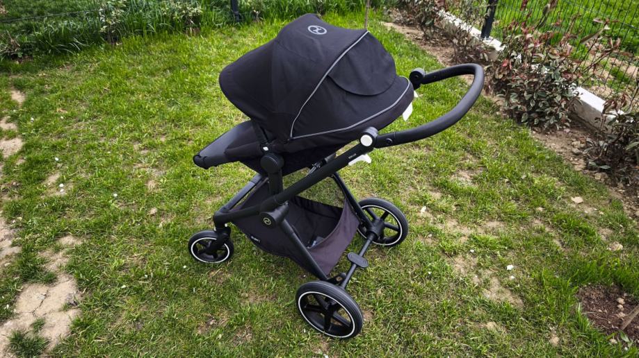 Jako uščuvana Cybex Eos Lux kolica (moon black), u kompletu sa Footmuffom za zimske dane.