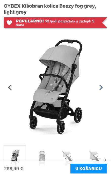 CYBEX Kišobran kolica Beezy fog grey, light grey, korištena 3 mjeseca, opran tekstil i rastavljena. Spreman za novog korisnika :) Stanje 9/10.