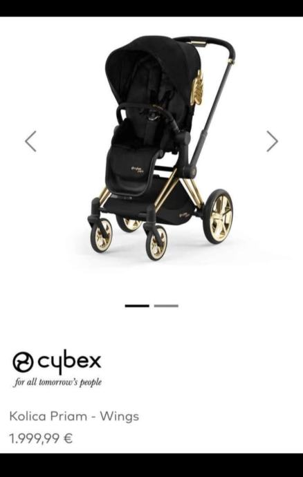 Posebna verzija Cybex Priam kolica, kolekcije Wings nastala u suradnji CYBEX-a i poznatog dizajnera Jeremya Scotta. Kolica sa crno-zlatnom konstrukcijom i crnim sjedalom s dodatkom zlatnih krila odražavaju dizajnerovu buntovnost i čine kolica jedinstvenima.