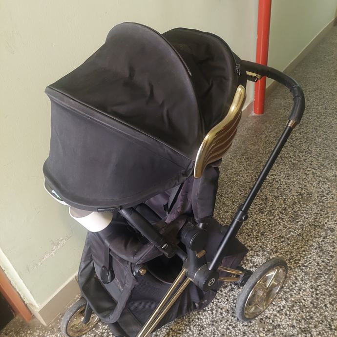 Sjedalo i Priam Lux košara, dodatna Cybex prečka za grickalice, mreža za komarce, komplet zastote za sjedalo sa jastukom za sjedalo i dekicom.
