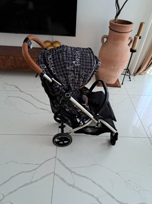 Prodajem Cybex sklopiva dječja kolica . Kolica su sive boje s uzorkom na tkanini i imaju kožne detalje na ručkama koji im daju moderan izgled. Sjedalo je okrenuto u smjeru vožnje.