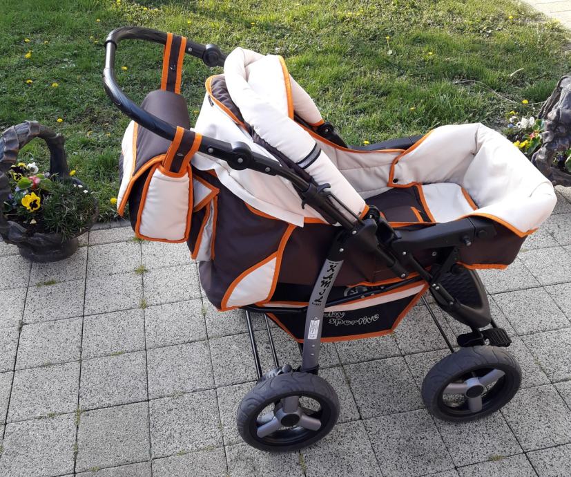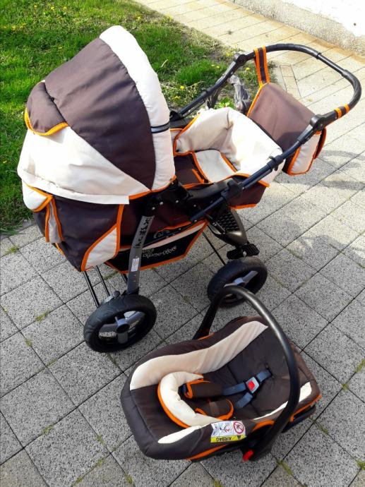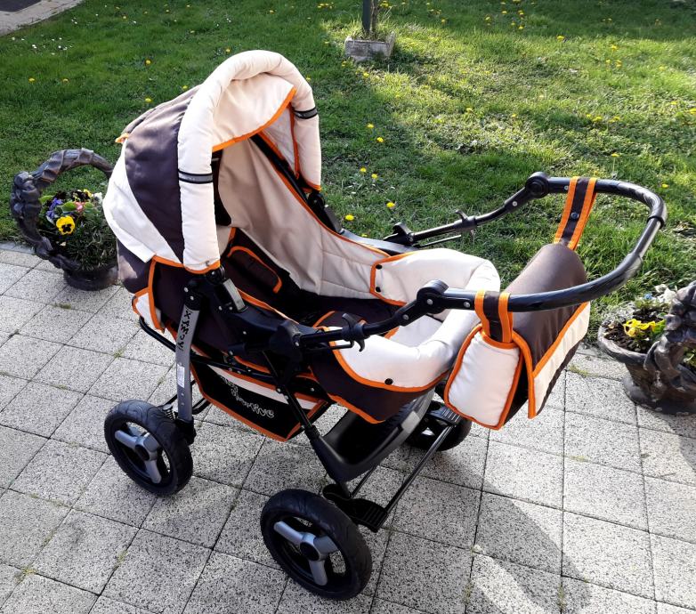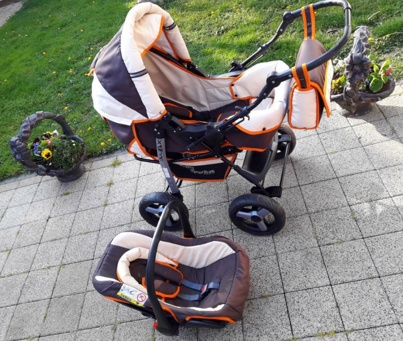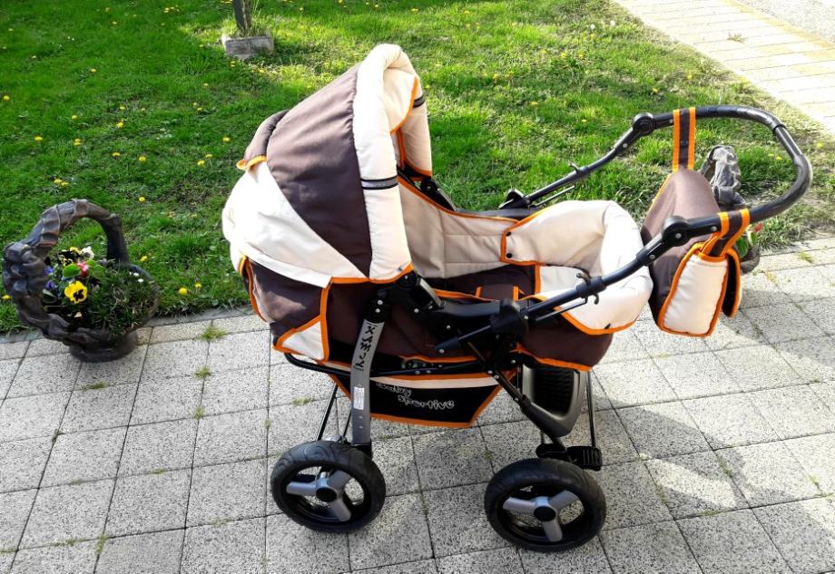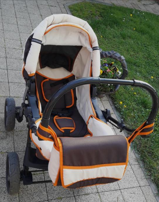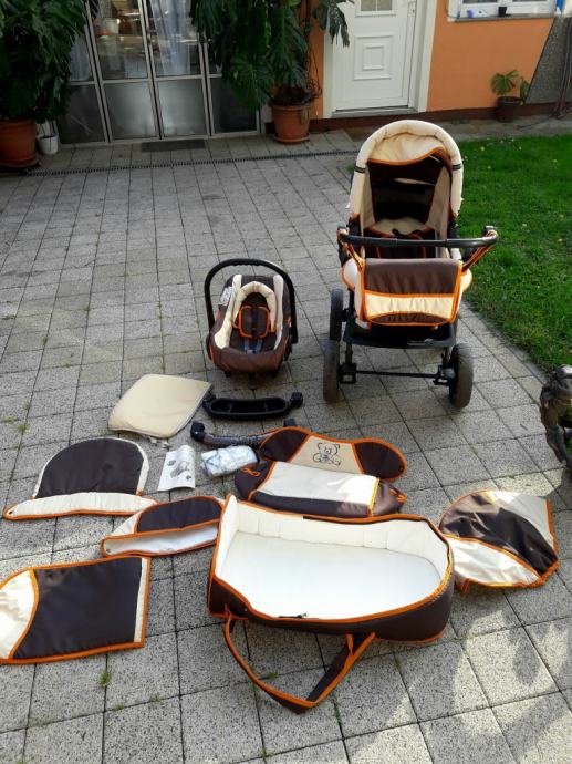 Dječija kolica su kao NOVA nisu korištena zbog posjedovanja još jednih!Nosiljka i sjedalica nekorištene.Vidljivo na slikama sve 13 dijelova!Mogućnost prebacivanja ručke na obje strane,više položaja od ležanja do sjedenja,zaštitna navlaka od kiše i mrežica protiv insekata promjenjiv prednji dio po potrebi dvije kočnice itd.