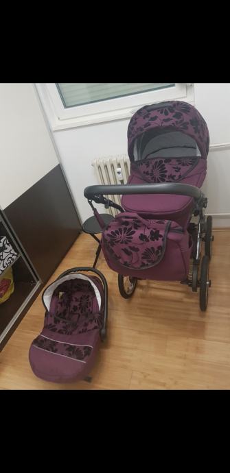 Kolica su ljubicaste boje sa crnim cvjetovima. Jako ocuvano.