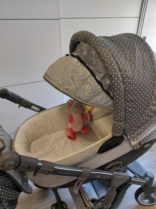 Svaki dio kolica(kosara,jaje,sportski dio) se moze okernuti prema vama ili prema van da beba gleda,znaci u oba smjera.