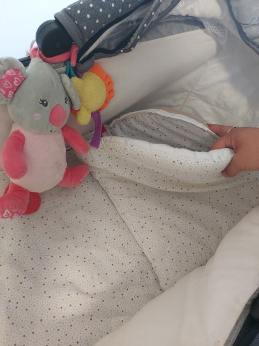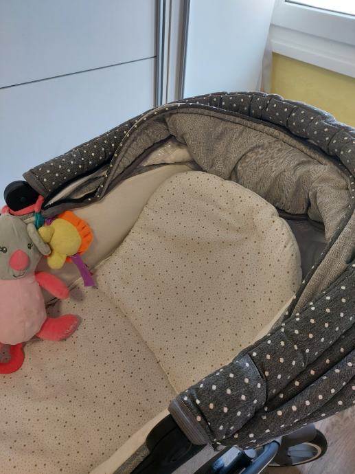 Kosara ima madrac i jastucic kako bi novorodencadu bilo mekano,sigurno i udobonu u voznji kolicima,