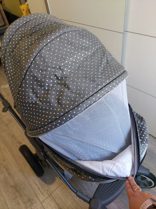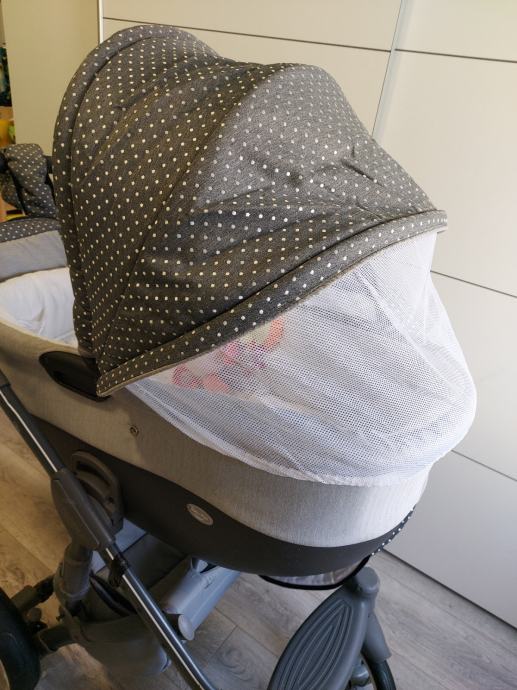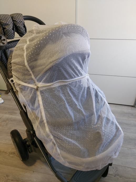 Mreza za komarace ide na sportski dio i kosaru,mreza ima drukere tako da ju je lako namontirati i ne pada,takoder ima cif na sredini zastitie kako bi mogli do bebe bez da ju skidate.