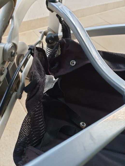 - lagana aluminijska šasija sa platnenom košaricom za stvari ispod (manje oštećenje na mrežici košare) koja se može skinuti zbog eventualnog pranja