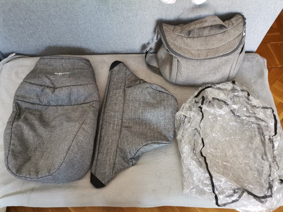 U kompletu je i torba za dječje potrepštine koja se može zakačiti na kolica te pokrov za kišu. Pokrov za komarce i kukce NIJE uključen.