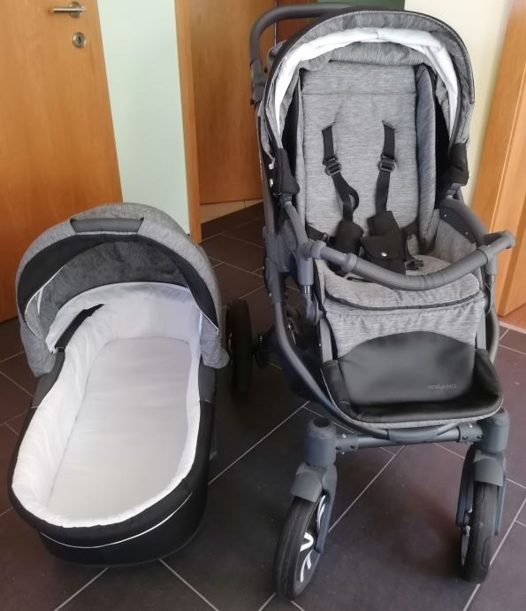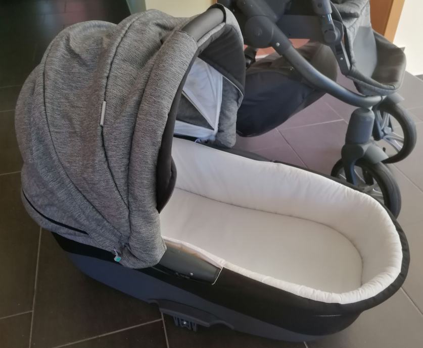 Naslon košare je podesiv, omogućava stavljanje djeteta u ležeći ili polu-ležeći položaj.