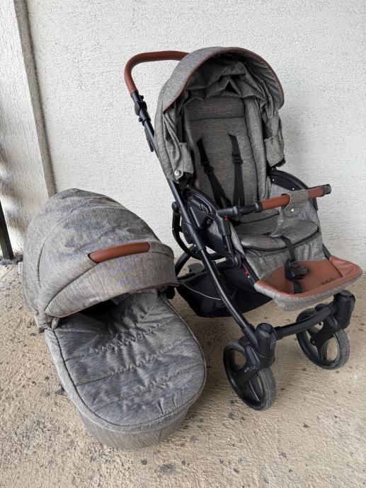 Kolica imaju sistem jednostavnog sklapanja, gume na pumpanje, tkanine sa zaštitom UV50+ (skidive i perive).