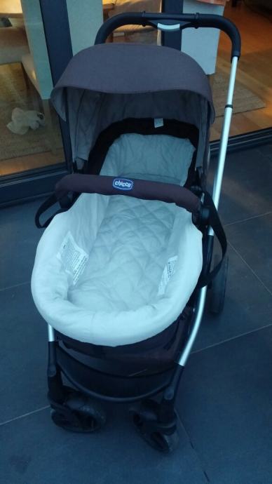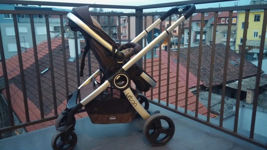 Dječja kolica Chicco Urban, aluminij bež-crna. Lagano upravljanje, okretanje sjedala naprijed-nazad, navlaka za košaru, zimska navlaka za noge, kabanica (pokrivalo košare). Vrlo očuvana.